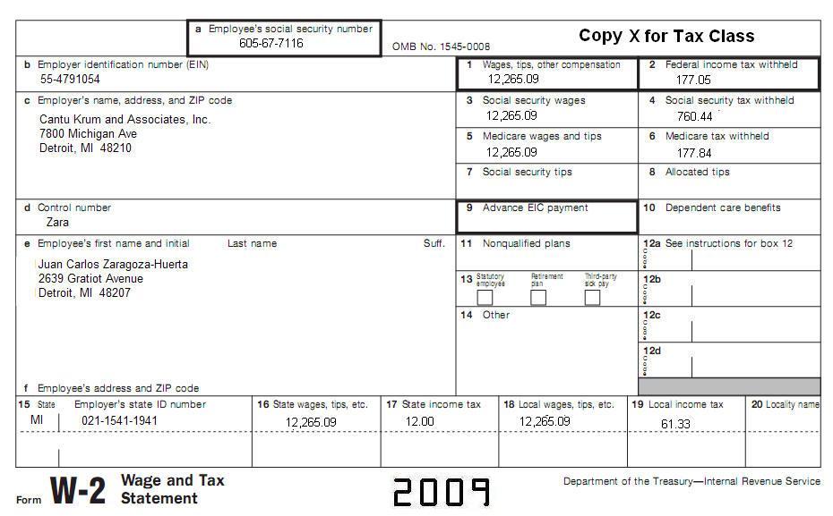 Juan Carlos is not married and has no children or other dependents. All information is current in the following W-2s, including income and address information.